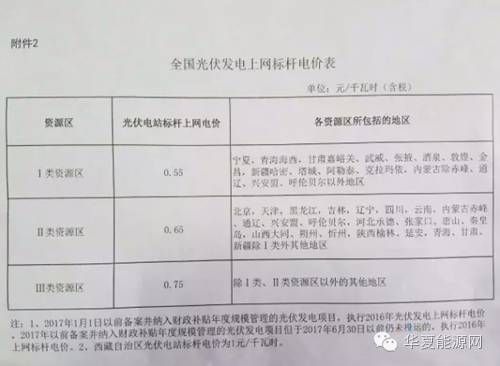 注:1、2017年1月1日以前備案并納入財政補貼年度規模管理的光伏發電項目,執行2016年光伏發電上網標桿電價。2017年以前備案并納入財政補貼年度規模管理的光伏發電項目但于2017年6月30日以前仍未投運的,執行2016年上網標桿電價。2、西藏自治區光伏電站標桿電價為1元/千瓦時。