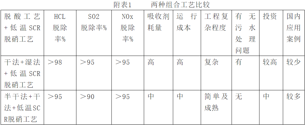 一:干法工藝+濕法工藝+低溫SCR脫硝工藝