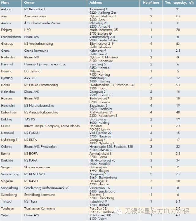 在考察之余,我們還調(diào)研了一下整個丹麥的焚燒廠分別情況,簡述如下: