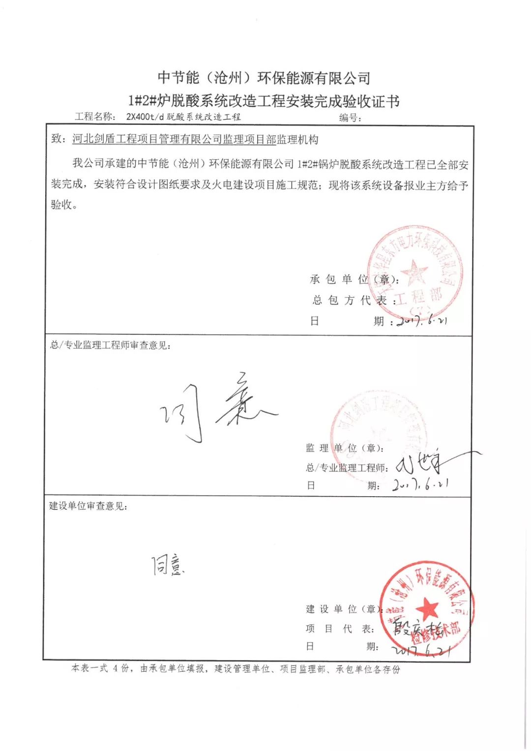 我公司中標(biāo)承建的河北滄州生活垃圾焚燒發(fā)電項(xiàng)目2x400t/d煙氣凈化工程于2017年10月29通過72+24小時驗(yàn)收,完成竣工報驗(yàn),2017年12月31日完成所有竣工手續(xù)交接,正式竣工驗(yàn)收。該項(xiàng)目采用SDA吸收塔+石灰漿制備系統(tǒng)+飛灰輸送系統(tǒng)+SNCR系統(tǒng)等凈化工藝,現(xiàn)整個系統(tǒng)現(xiàn)運(yùn)行穩(wěn)定,為我公司 EPC項(xiàng)目。