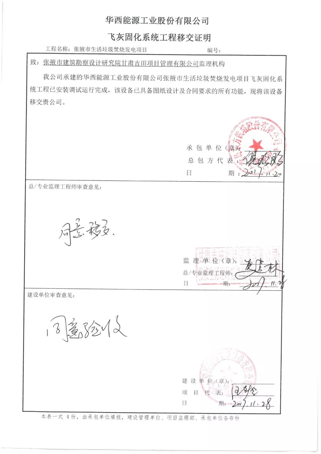 經過一年的運行,現該項目設備運行穩定,各項指標符合設計要求,其建設單位華西能源工業股份有限公司已于2018年11月20日提請環保驗收竣工公示,2018年12月通過公示,該項目現已進入正式運營軌道。