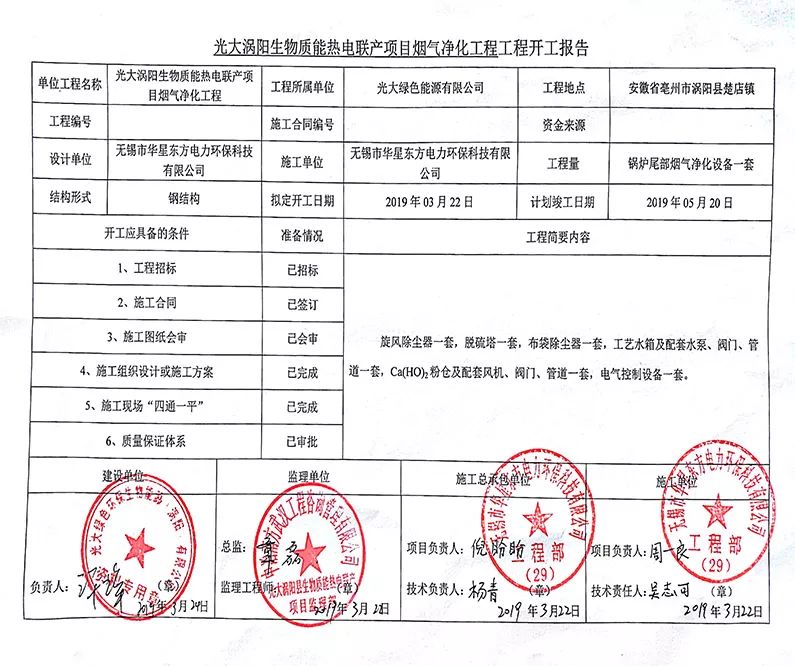 光大渦陽生物質熱電聯產項目煙氣凈化工程開工建設