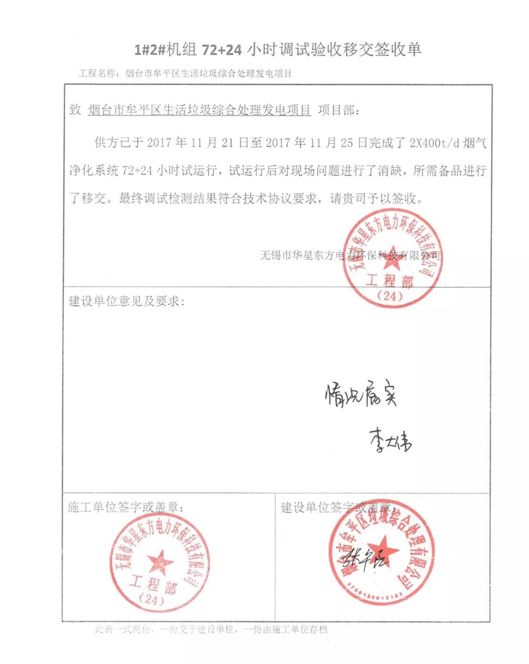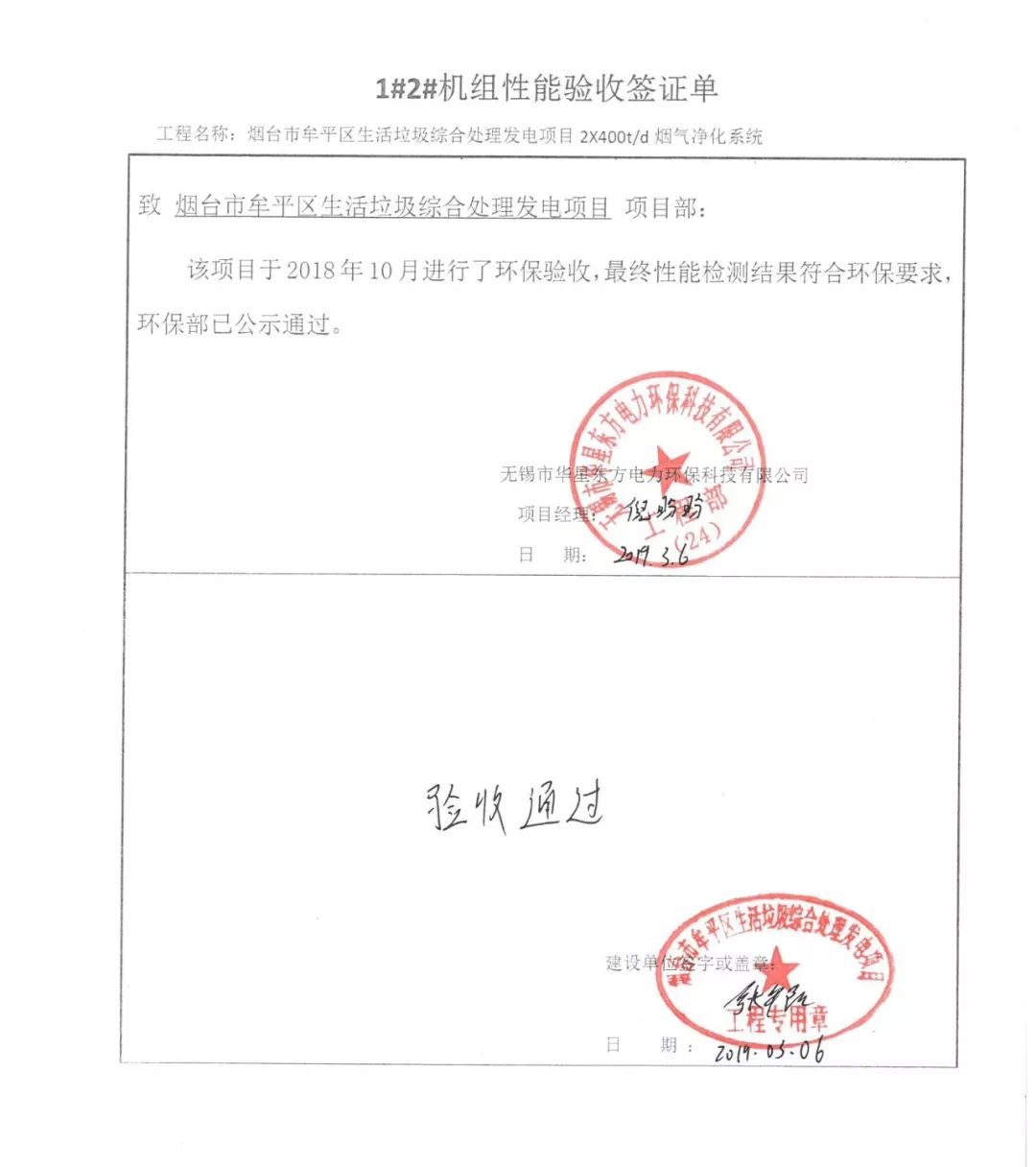 我公司承建的煙臺(tái)市牟平區(qū)生活垃圾綜合處理發(fā)電項(xiàng)目煙氣凈化工程于2018年10月通過(guò)環(huán)保驗(yàn)收,現(xiàn)該項(xiàng)目運(yùn)行穩(wěn)定,各項(xiàng)參數(shù)符合設(shè)計(jì)要求。