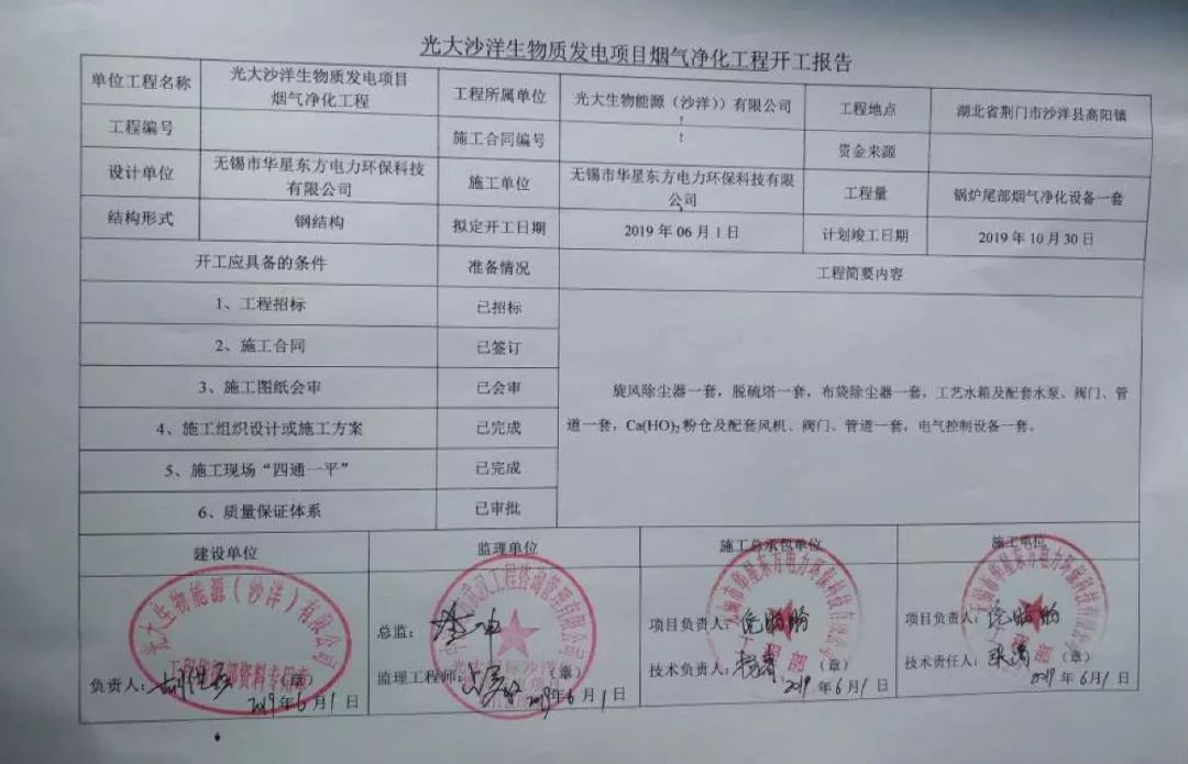 我公司承建的光大沙洋生物質發電項目煙氣凈化工程于2019年6月1日結構封頂,主體已完成,現已進入附屬設備管道安裝環節。