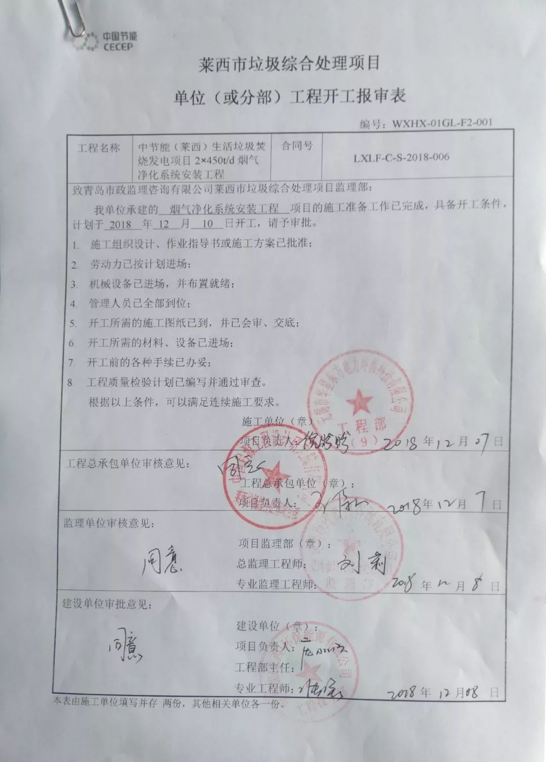 我公司承建的中節(jié)能(萊西)生活垃圾焚燒發(fā)電項(xiàng)目煙氣凈化工程于2018年12月10日開(kāi)工,目前1號(hào)爐正在調(diào)試運(yùn)行中,2號(hào)爐將于2019年11月中旬進(jìn)入熱態(tài)調(diào)試。