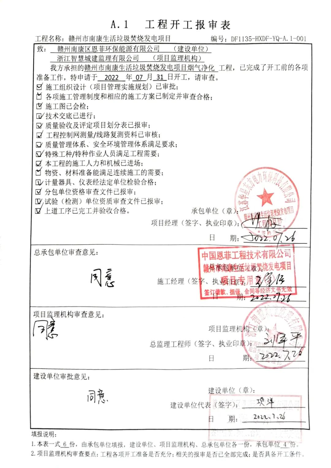 我公司承建的江西省贛州市南康生活垃圾焚燒發(fā)電項(xiàng)目煙氣凈化工程于2022年07月31日開工建設(shè)。 The FGC project undertaken by Huaxing-east for the Nankang waste incineration power plant in Ganzhou, Jiangxi has began construction on July 31, 2022.