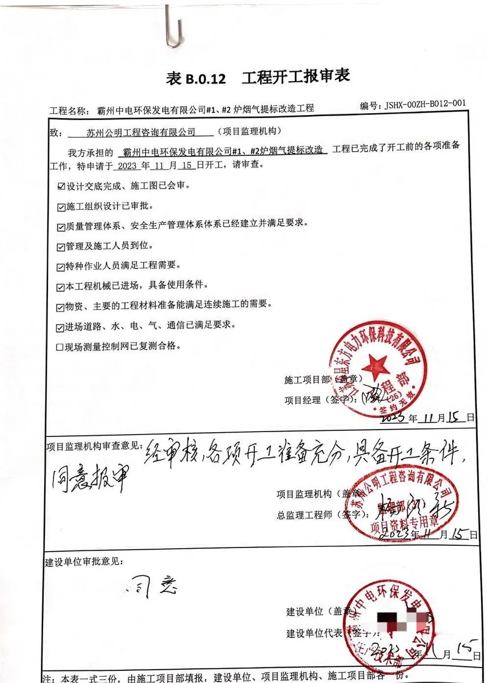 我公司承建的河北省廊坊市霸州生活垃圾焚燒發電項目煙氣凈化系統提標改造工程于2023年11月15日開工建設。 The flue gas cleaning system standard improvement and renovation project of the Bazhou domestic waste incineration power generation project in Langfang City, Hebei Province, undertaken by our company, started the construction phase on November 15, 2023.