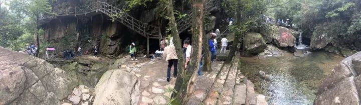 在接下來的浙北大峽谷及九龍峽景區,遙望千米高山對峙、森林茂密、路邊飛瀑流泉,可見懸崖疊障、奇峰林立、翠竹連綿,在充分領略安吉秀美的自然風光之余,不禁感嘆大自然的鬼斧神工,人類的無窮智慧。在大峽谷,面對云霧繚繞的大山,為了探訪黃浦江源頭的真實面目,華星東方職工一行不懼山高路陡,冒雨拾階而上,敢于爭先,同事間一路互相幫扶,手拉肩背,只為一路向上不掉隊。連60余歲的退休返聘職工也不言放棄,歷時1小時登頂一睹黃浦江源頭風貌。