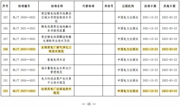 近日,由中國電力企業聯合會垃圾發電標準化委員會(以下簡稱“中電聯垃圾發電標委會”)組織國內環保企業編制的《生物質電廠煙氣凈化工程技術規范》(DL/T 2423—2021)、《垃圾發電廠垃圾池技術規范》(DL/T2427—2021)、《危險廢物焚燒煙氣凈化系統技術規范》(DL/T 2428—2021)、《焚燒爐及余熱鍋爐性能試驗規程》(DL/T 2429—2021)、《垃圾焚燒發電廠安全生產評價導則》(DL/T2430—2021)五項具有垃圾發電特性的電力行業標準,已由國家能源局批準,于2022年3月22日起正式實施。其中《生物質電廠煙氣凈化工程技術規范》(DL/T 2423—2021)、《危險廢物焚燒煙氣凈化系統技術規范》(DL/T 2428—2021)兩項技術規范分別由我司主編和參編,是繼我司主編的《垃圾發電廠煙氣凈化系統技術規范》DL/T 1967-2019發布以來,又2項與煙氣凈化有關的重要行業規范獲批發布。