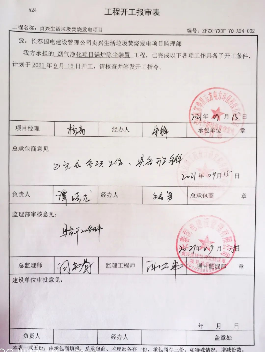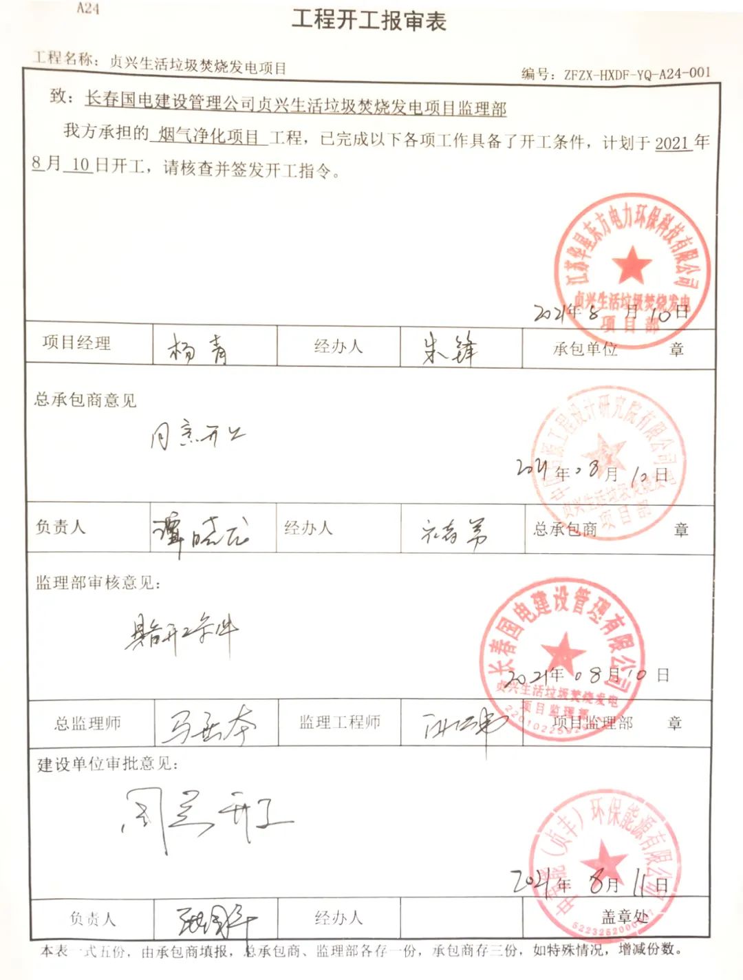 我公司承建的貴州省貞興生活垃圾焚燒發(fā)電項(xiàng)目煙氣凈化工程于2021年8月11日開工建設(shè)。