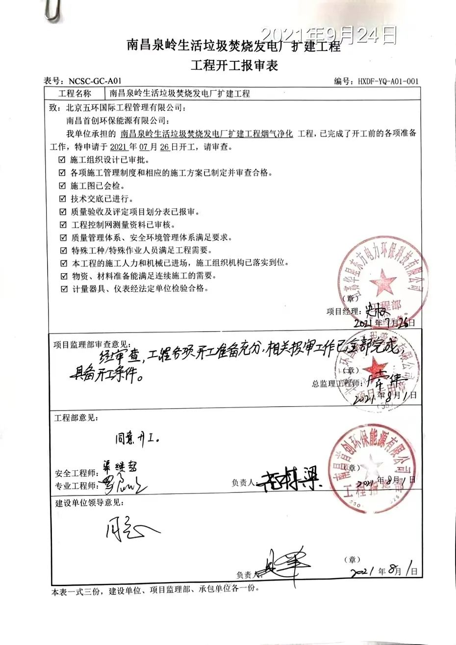 The flue gas cleaning (FGC) project undertaken by Huaxing East for Quanling waste incineration power plant in Nanchang, Jiangxi was commenced on July 26, 2021.