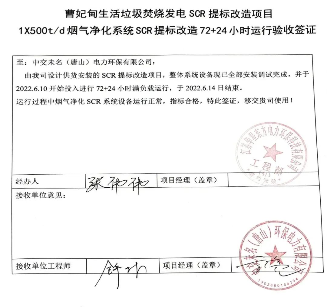 我公司承建的河北省唐山市曹妃甸生活垃圾焚燒發電項目煙氣凈化工程于2022年06月14日通過72+24小時試運行。