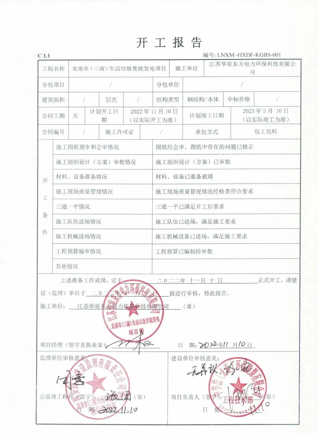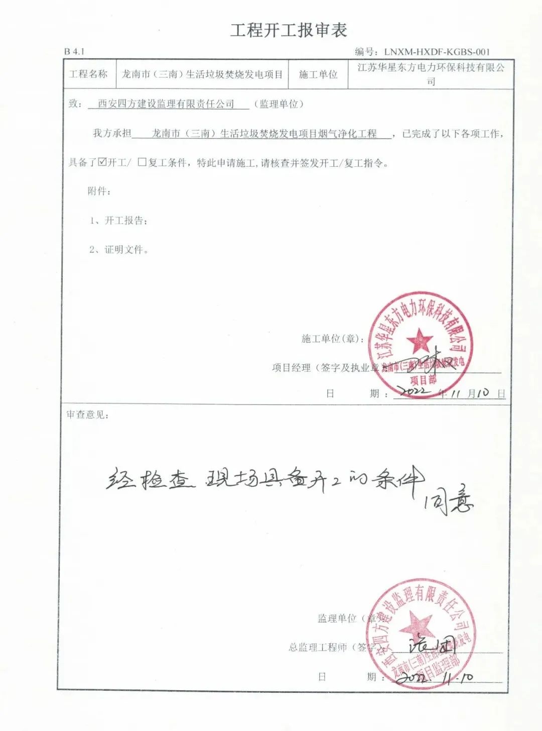 我公司承建的江西省龍南市(三南)生活垃圾焚燒發電項目煙氣凈化工程于2022年11月10日開工建設。 The FGC project undertaken by Huaxing for Longnan (Sannan) Waste-to-Energy plant in Jiangxi Province was commenced on November 10, 2022.