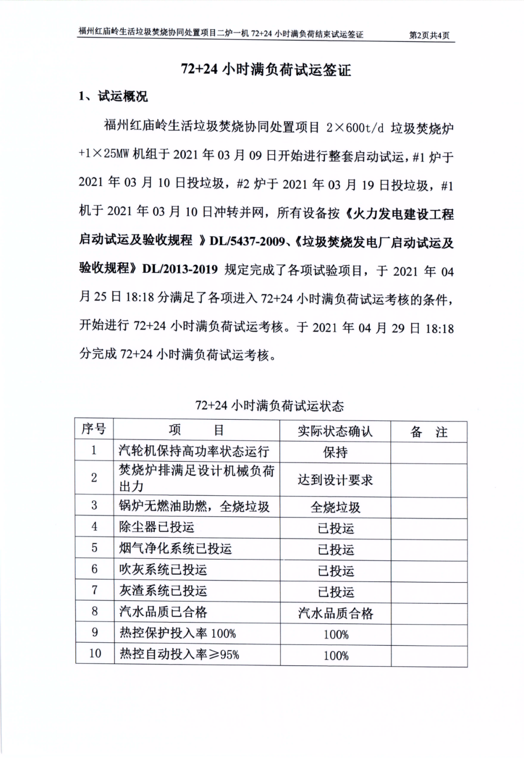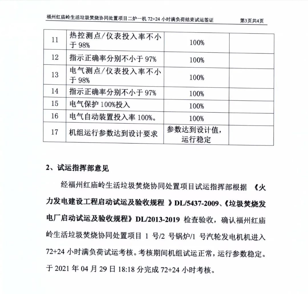 我公司承建的福建省福州市紅廟嶺生活垃圾焚燒發(fā)電項(xiàng)目煙氣凈化工程于2021年04月29日通過(guò)72+24小時(shí)試運(yùn)行。 The flue gas cleaning (FGC) project undertaken by Huaxing-east for Hongmiaoling waste incineration power plant in Fuzhou, Fujian passed 72+24 hours trial operation on April 29, 2021.