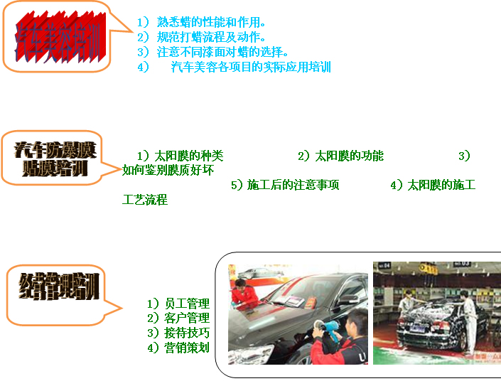 技術——始終將汽車美容養護各項新項目、新業務、新技術積極主動地向合作客戶推廣。